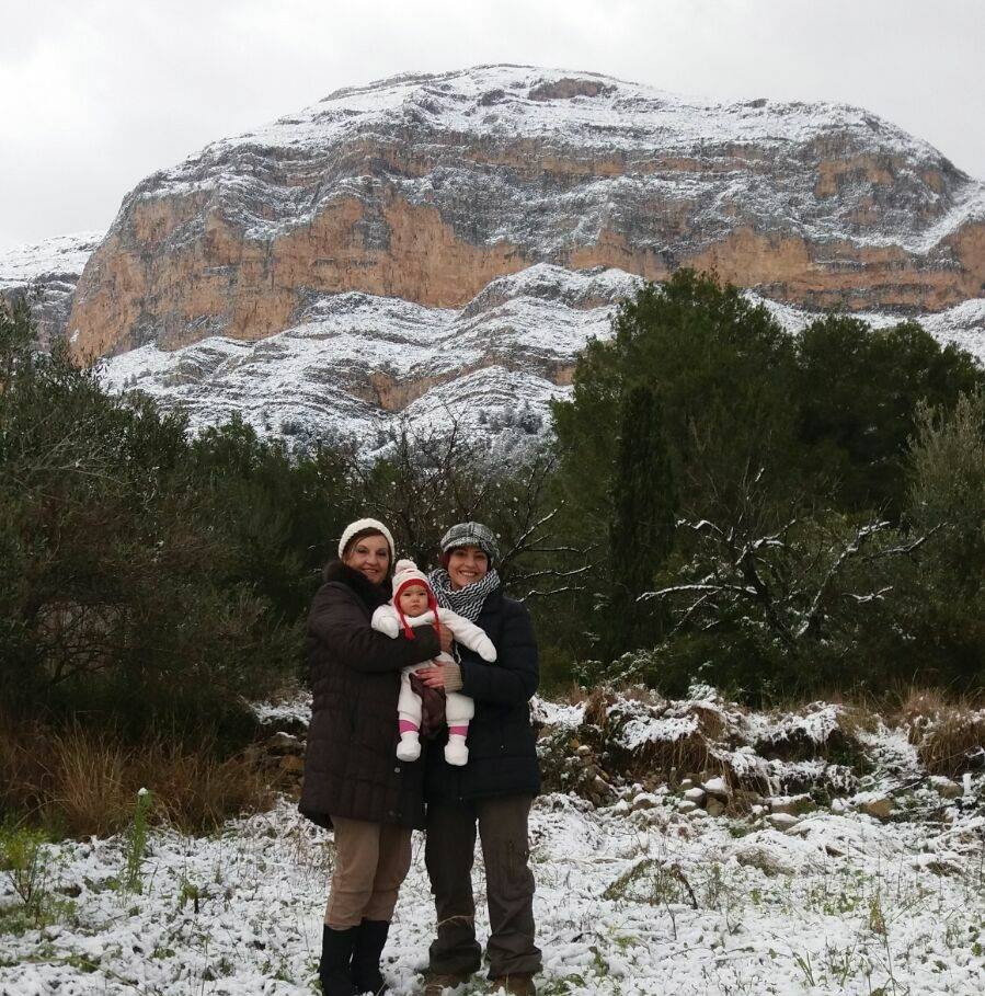 Desprès de 34 anys, la meua vella olivera s'ha tornat a vestir de blanc, tot i que en l'empeny de regalar-nos la seua imatge nevada s'ha deixat algunes branques .